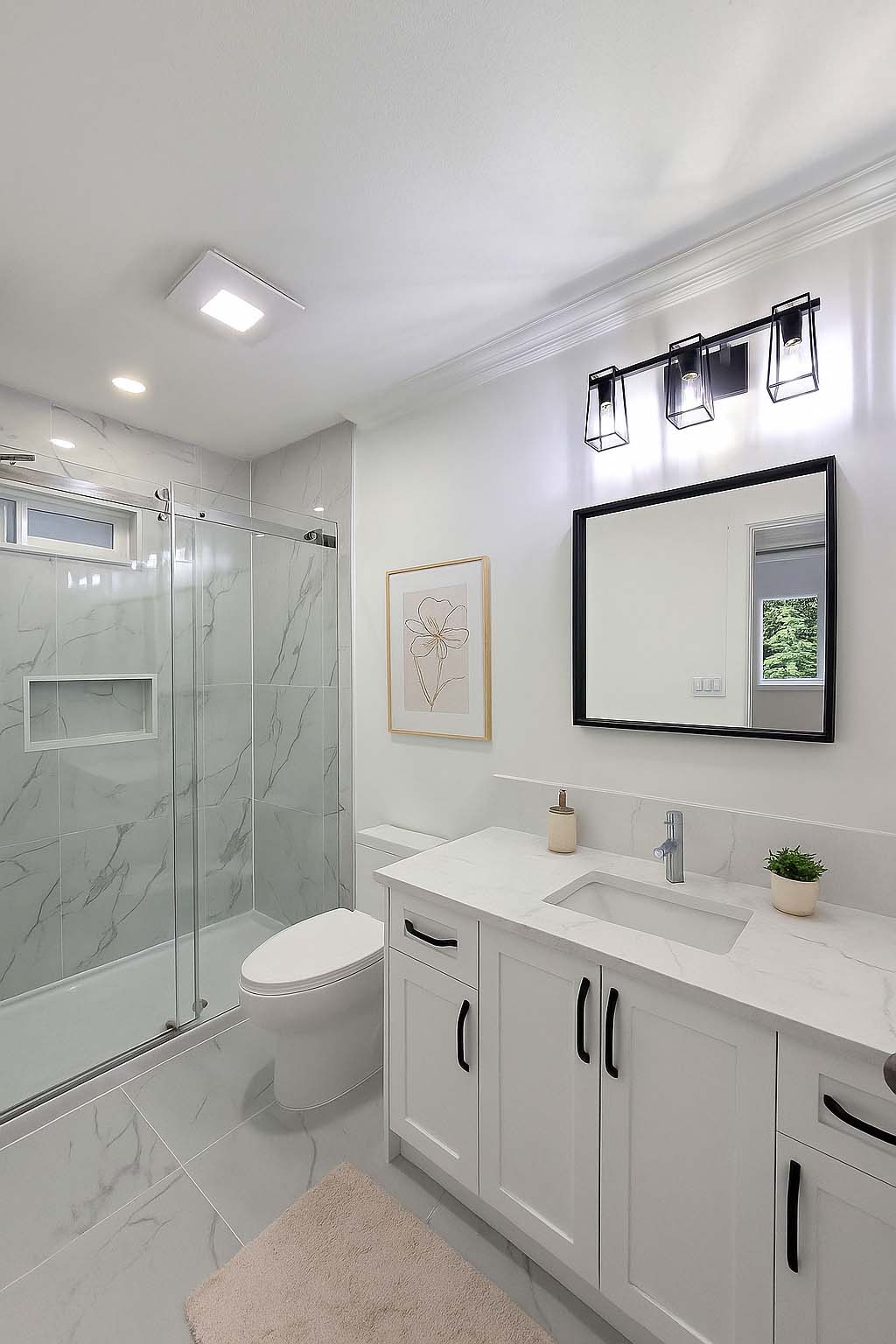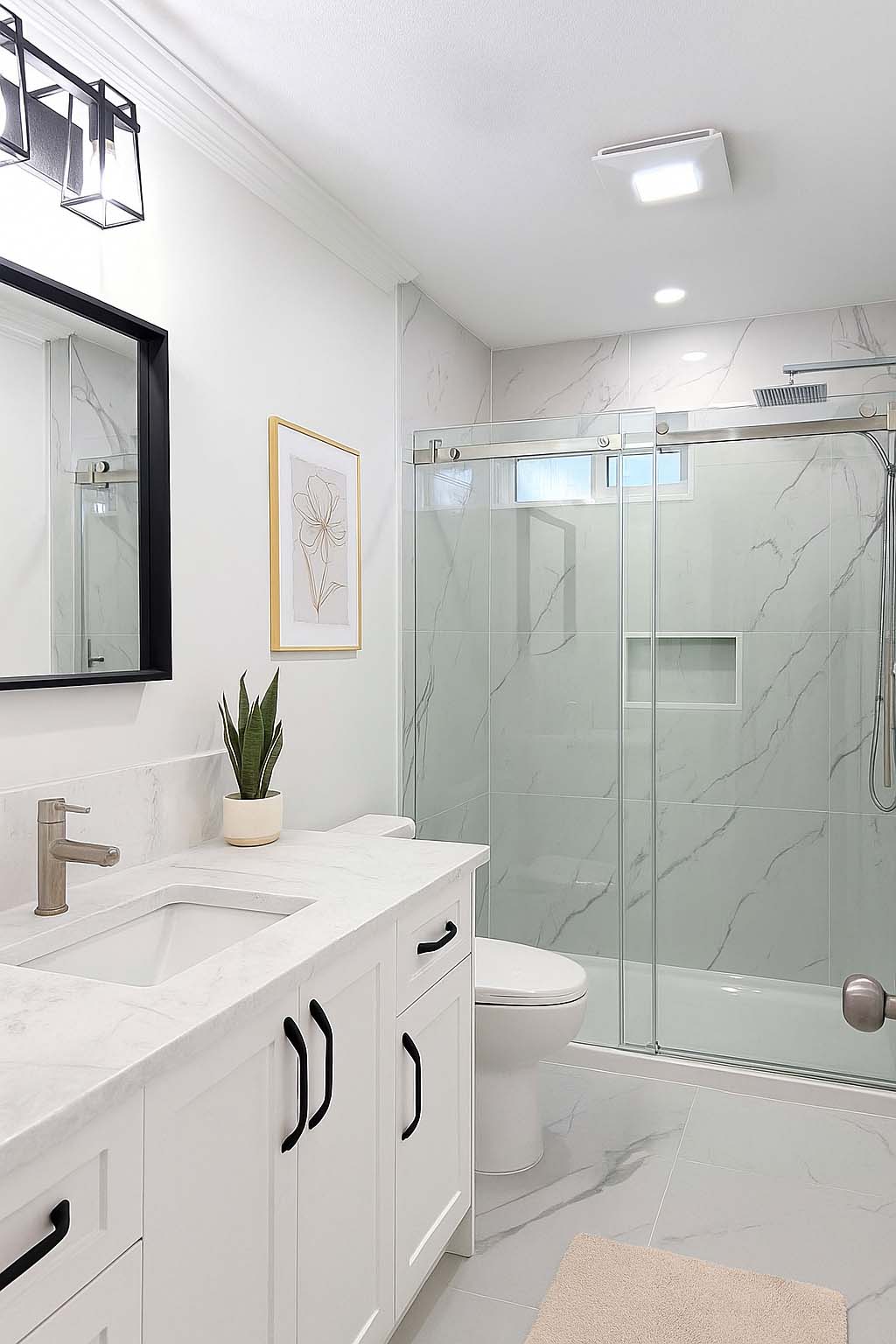 • White-Themed Bathroom: Refresh your bathroom with a modern, all-white aesthetic for a clean, open feel.
